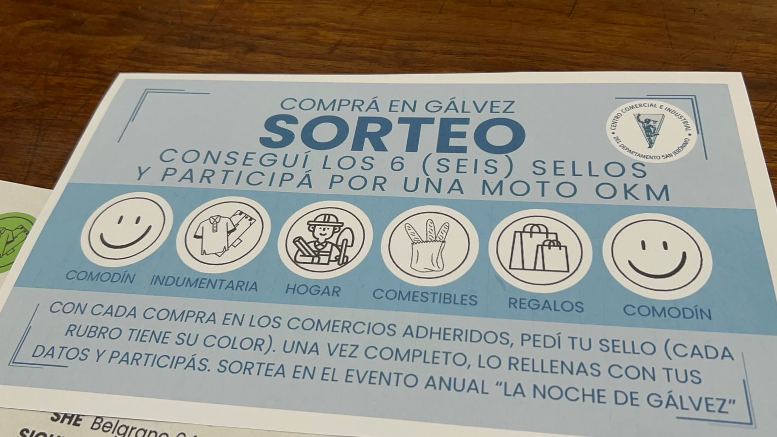 “En el marco de querer estimular el consumo local y crear conciencia de lo que es consumir dentro de nuestra ciudad, lanzamos este programa destinado a los socios. Quienes no lo sean, están invitados a asociarse y participar. Se trata de un sistema de cupones con sellitos, divididos en cuatro rubros y dos comodines, que los consumidores completarán al realizar compras. El premio final será una moto, que se sorteará el 13 de diciembre, en la Noche de Gálvez”.