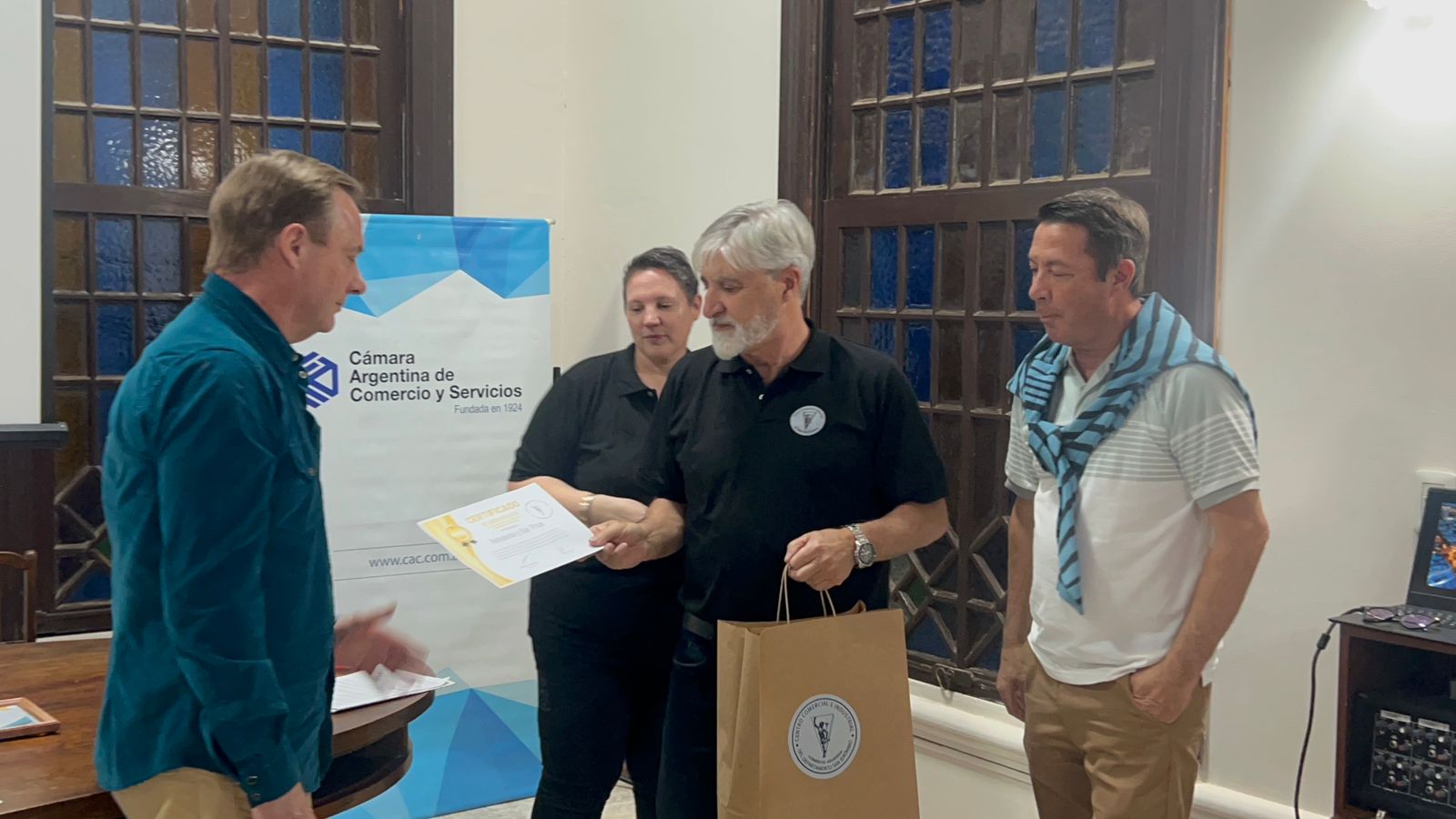 “Hoy son los días más felices cuando estoy acá como presidente del Centro Comercial y de la comisión, porque agasajamos a tres socios vitalicios que nos ponen muy orgullosos, que hace muchos años que están trabajando en Gálvez y en Argentina. También le dimos un reconocimiento a Casa Druetto que cumple 75 años. Mantenerse tanto tiempo en el comercio es muy importante, con tres generaciones, y la verdad que nos pone muy bien”.
